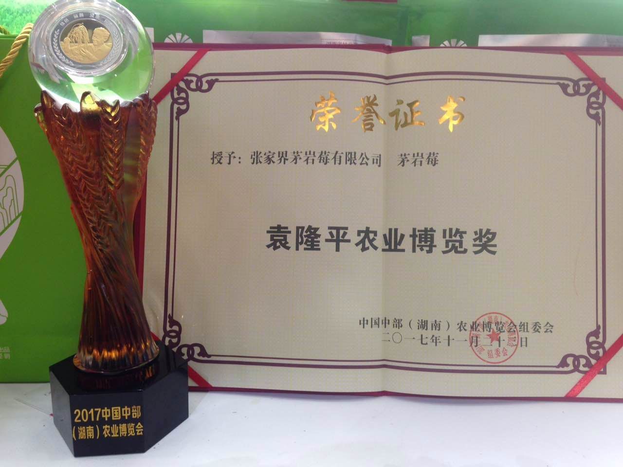 11月24日,為期七天的2017中國中部(湖南)農業博覽會在長沙落幕,23日下午在長沙國際會展中心舉行了閉幕式暨頒獎典禮。頒獎典禮上公布了20個農博會設計獎、42個農博會組織獎和122個農博會產品金獎。另外,備受矚目的以袁隆平院士名字命名的“袁隆平農業博覽獎”公布了獲獎名單,7個品牌產品榮獲大獎;其中,張家界茅巖莓有限公司的“茅巖莓茶”榮獲此獎。