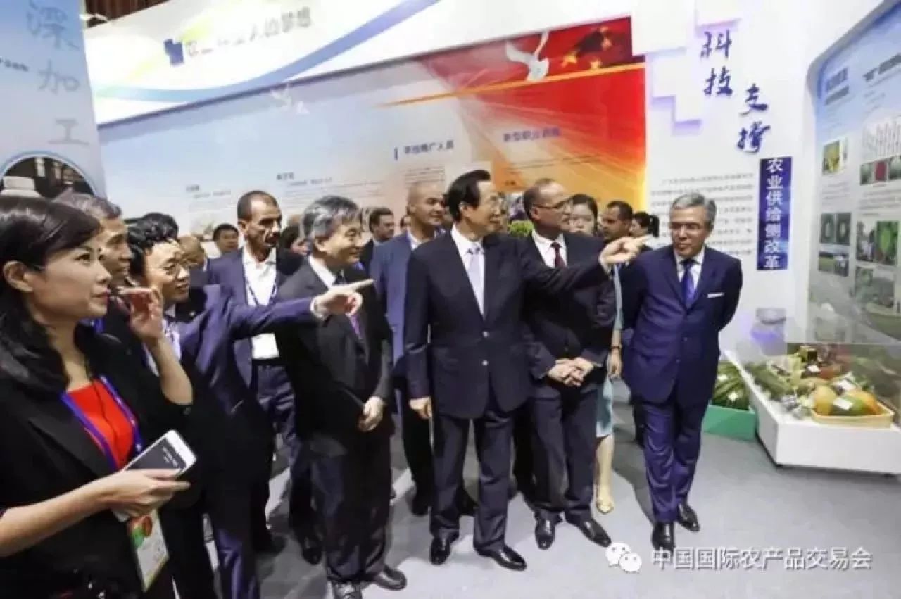 (農業部部長韓長賦陪同阿爾及利亞農業、農村發展和漁業部部長阿卜杜勒卡德爾·布阿茲基一行參觀展館)