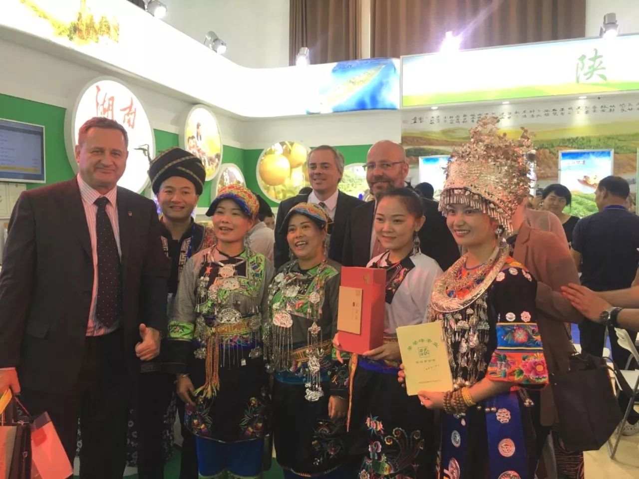 湖南展區因鮮明的特色,熱情的講解和濃郁的少數民族風情讓眾多的參展嘉賓在此流連忘返。德意志聯邦共和國駐華大使館參贊史蒂芬哈伯曼、經濟處處總長埃克斯魏德勒、奧地利駐華大使館參贊、瑞典駐華大使館參贊、印度駐華大使館經濟處處長等駐華使節紛紛走進湖南展區,在品嘗完參展的五個地標農產品后贊不絕口,連聲說道:“hunan,very good!”