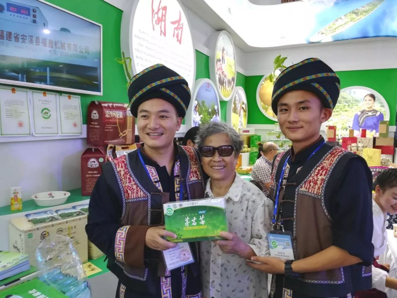 開幕式當天,湖南省綠色食品辦公室主任朱建湘親臨現場指導工作,對各參展企業代表提出殷切期望,并從服裝禮儀、貨品陳列、推介內容等方面提出寶貴意見。而省綠辦的兩位工作人員換上張家界土家服飾以后,瞬間成為湖南展區一道亮麗的風景線。