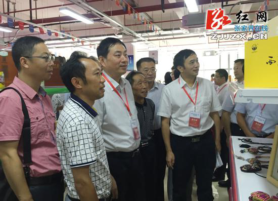 在啟動(dòng)儀式結(jié)束后,王志剛一行還來(lái)到張家界展位前,了解各參展商參展情況,并希望各企業(yè)負(fù)責(zé)人要在產(chǎn)品包裝、形象設(shè)計(jì)等方面多下功夫,使產(chǎn)品提質(zhì)升級(jí)。同時(shí),可多學(xué)習(xí)其他市州先進(jìn)經(jīng)驗(yàn),堅(jiān)持努力創(chuàng)新,進(jìn)一步提升自身產(chǎn)品水平。